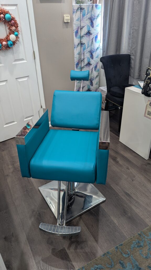 We specialize in recovering hydraulic styling chairs, shampoo units, and technician stools using commercial-grade, chemical-resistant vinyls. These advanced fabrics are designed to withstand hair dye, bleach, and daily cleaning fluids without peeling or fading.